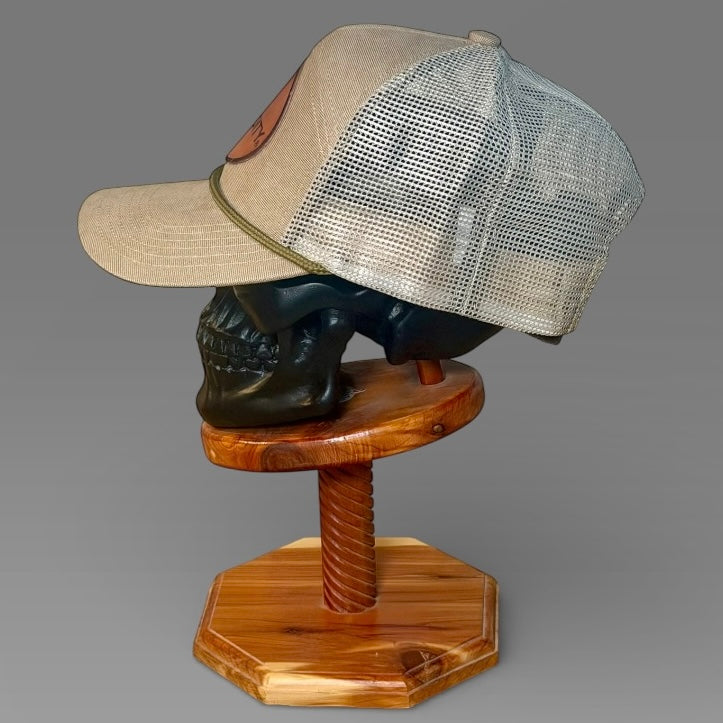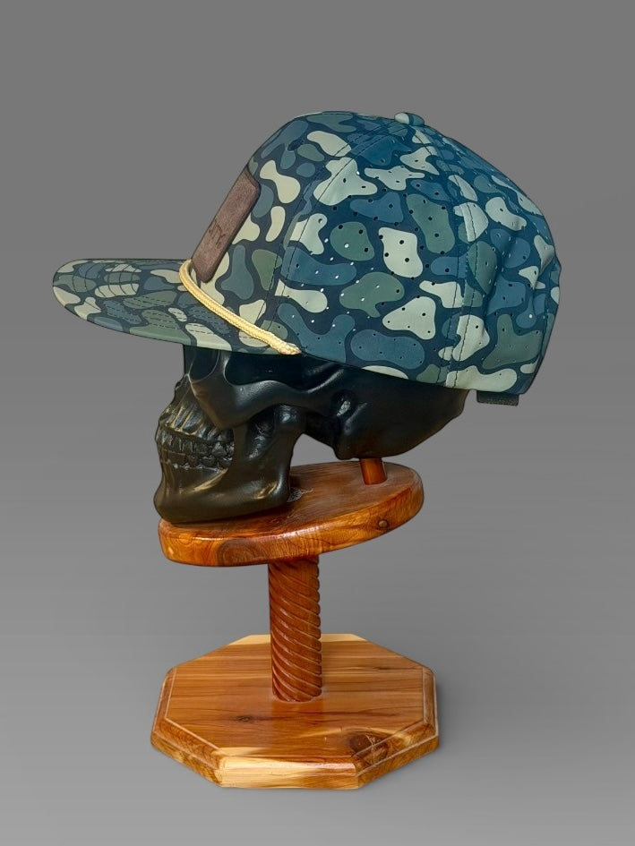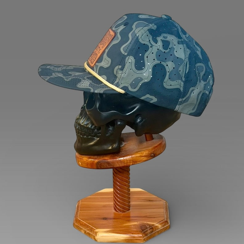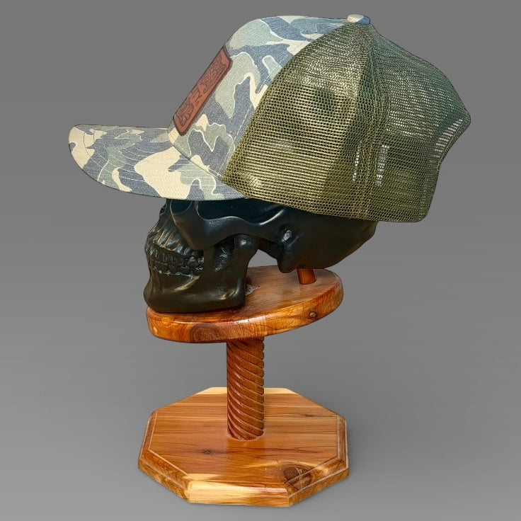 Tooled leather design engraved on 3oz Herman Oak vegetable tanned leather. Oiled and edges finished with hot beeswax. Pressed by hand, by Cole Lamson. Caps are various styles by Sobro.